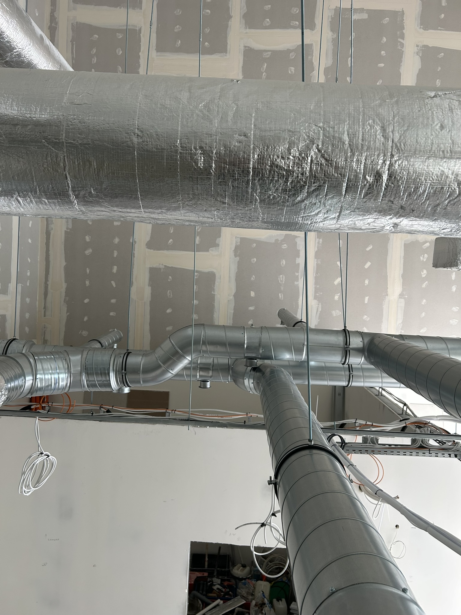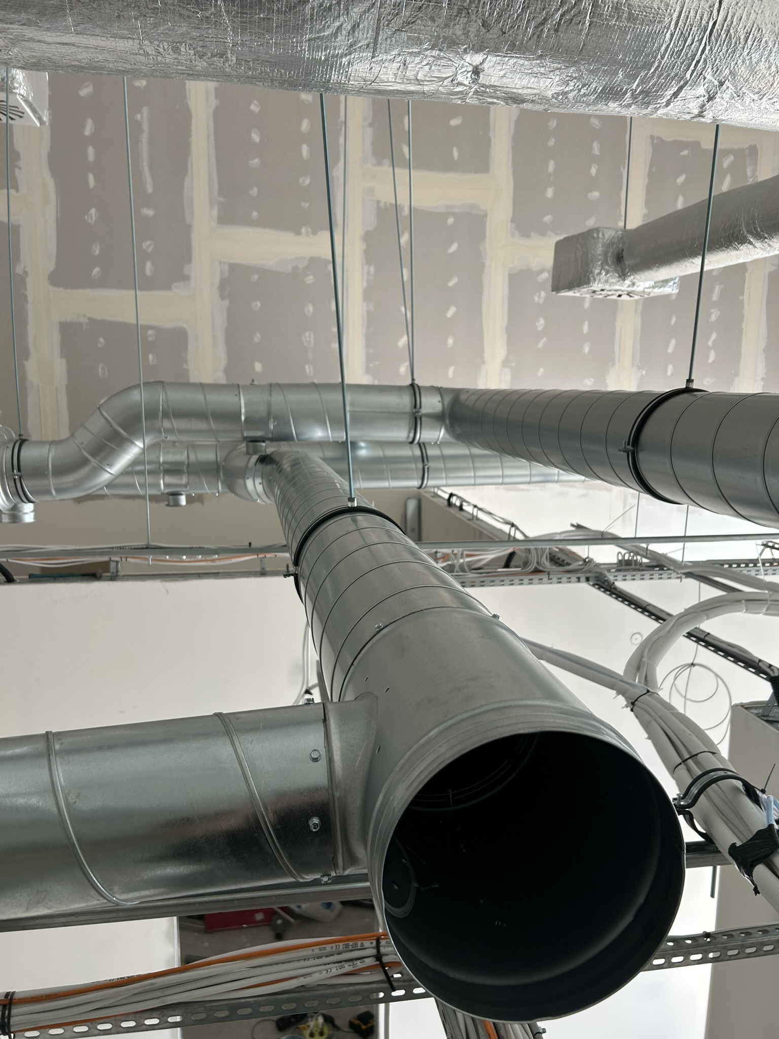 Na prezentowanych zdjęciach widać etap surowej instalacji, gdzie kluczowe są dokładność, przemyślane trasy i jakość wykonania – zanim całość zostanie zabudowana.